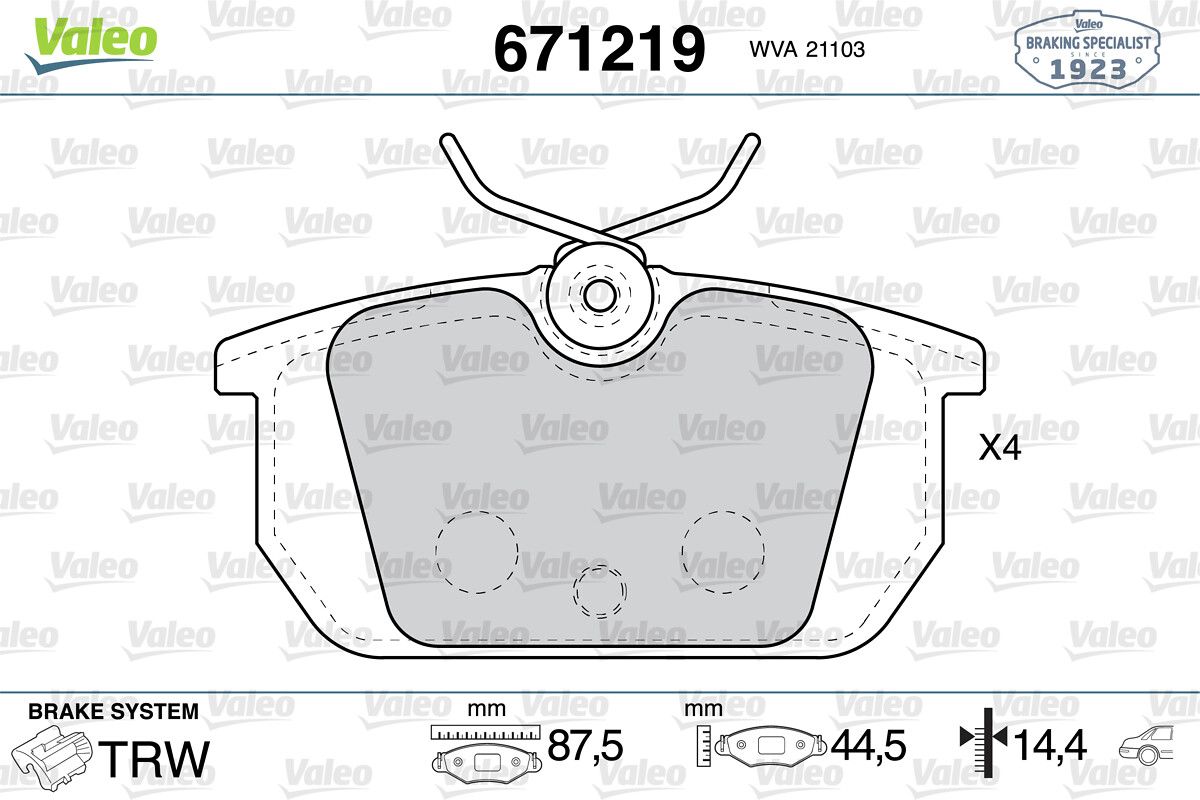 VALEO 671219 | Fren Balata Arka Tempra.Sw-Marea