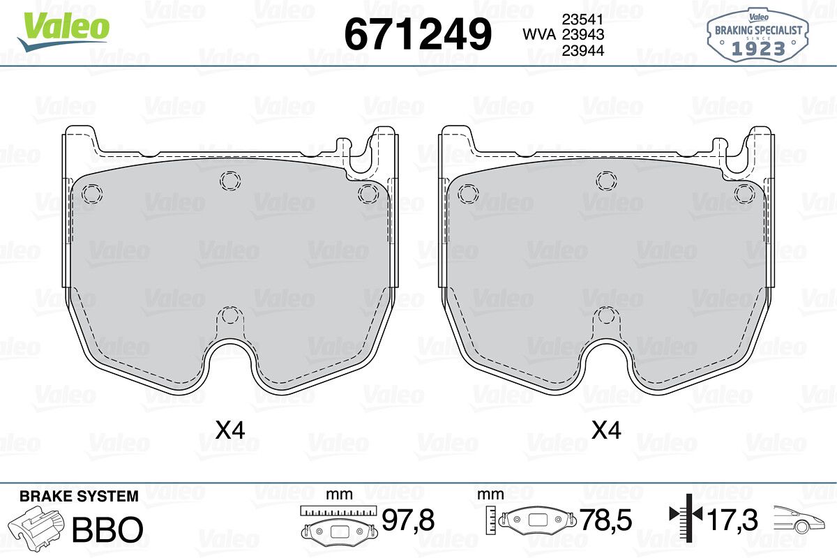 VALEO 671249 | Fren Balatası Ön C219 CLS 55 Amg 05-10 W211 E55 Amg 02-08 W220 S65 Amg 01-05