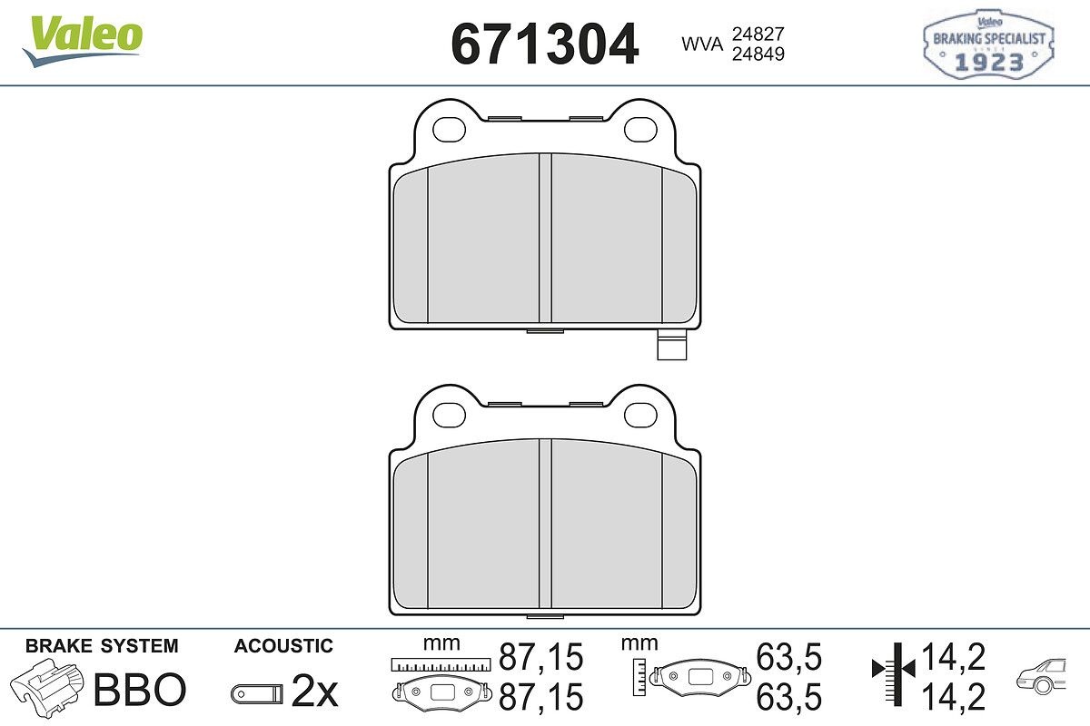 VALEO 671304 | Balata Fren Arka-(Mitsubishi: Lancer 2.0 08-15 Evo-X)