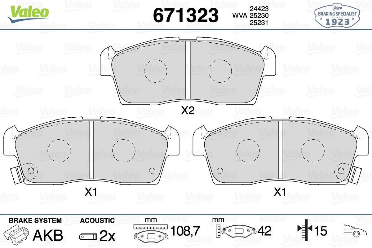 VALEO 671323 | Fren Balatası Ön Citroen C-Zero 10-Mitsubishi I Mıev 10-Peugeot Ion 10 -