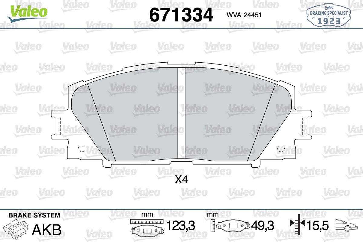 VALEO 671334 | Fren Balatası Ön-Toyota Prıus 1.8 09-Toyota Prıus Phv 1.8 16 -