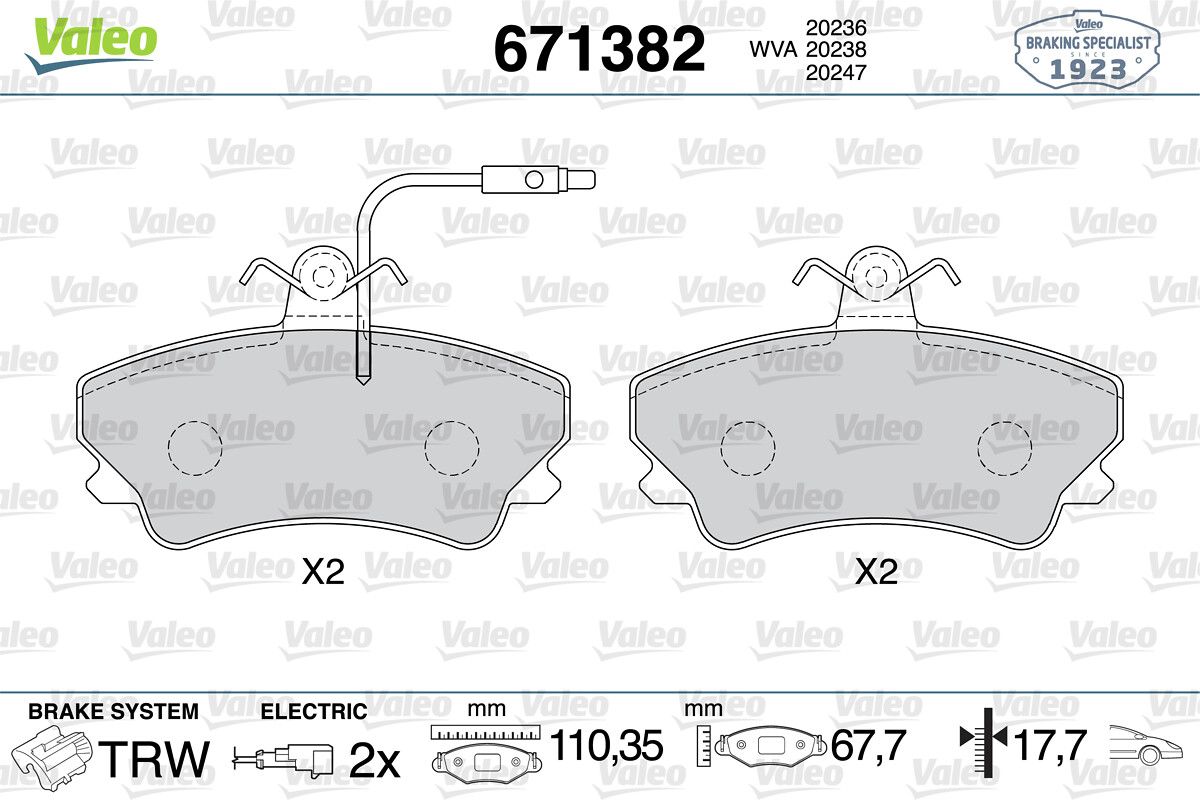 VALEO 671382 | Disk Fren Balatası (Ön) Renault Espace 01.91-10.96 | 1 Adet