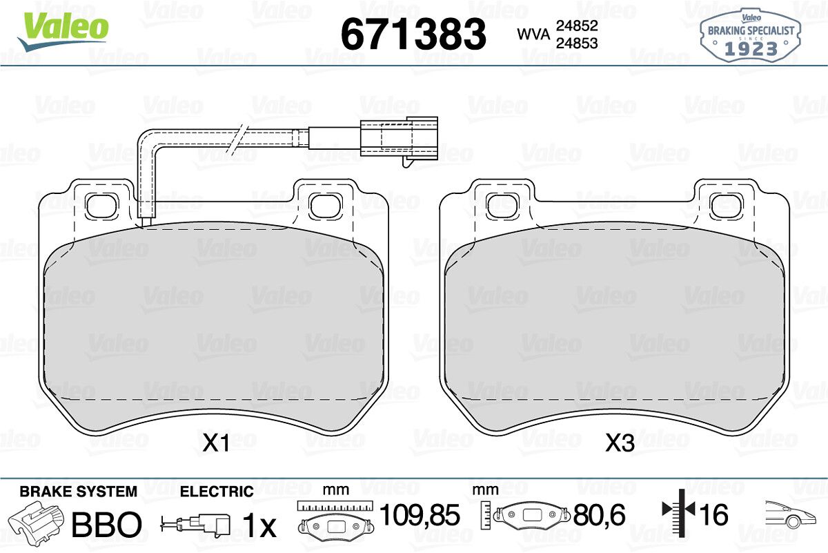 VALEO 671383 | Fren Balatası Ön (109mm) A159 Spıder 05= >