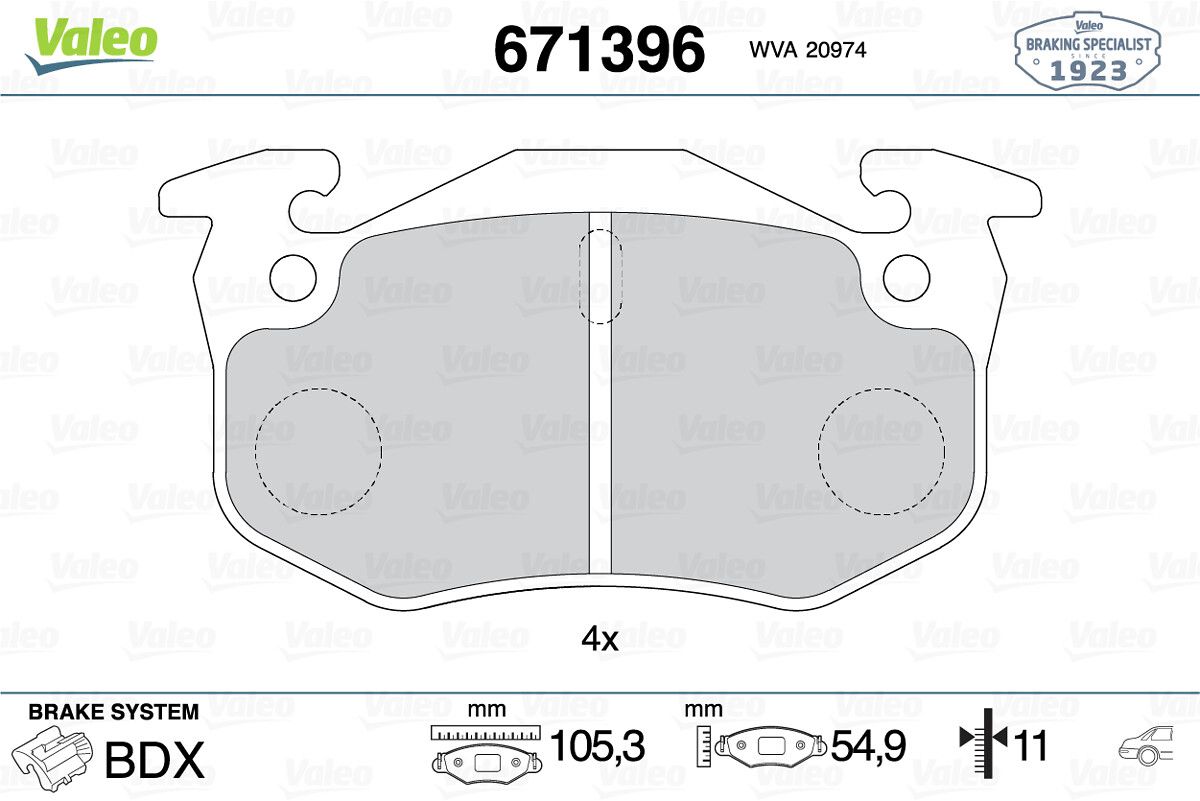VALEO 671396 | Fren Balatası Arka Renault 11 84-88 9 Turbo 84-89 5 Super Cınque 85-90