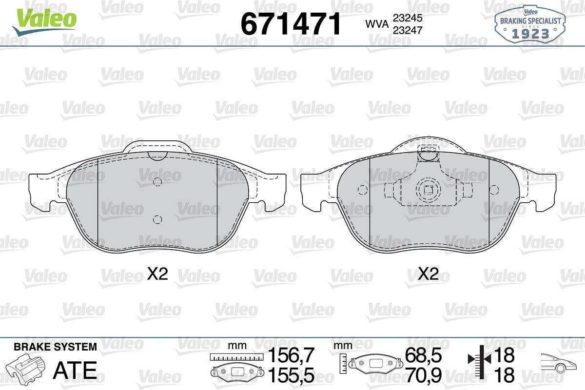 VALEO 671471 | Ön Fren Balatası Laguna II 1.6 16V 1.8 16V 1.9 3,0 V6 Megane II 05-1.6 16V 1,5 2.0 1.9