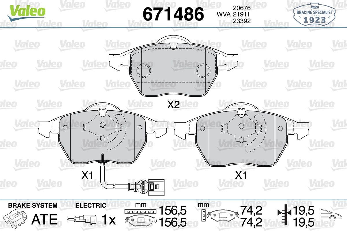 VALEO 671486 | Ön Fren Balatası-Kablolu (VW Golf 98-06 Polo 05-10 Audi A3 97-03 Seat Leon 00-06)