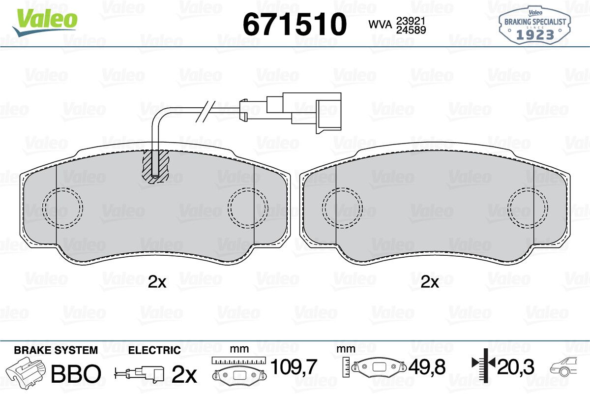 VALEO 671510 | Fren Balatası Arka Nissan Cabstar 06-Renault Trucks Maxıty 110.28 06 -