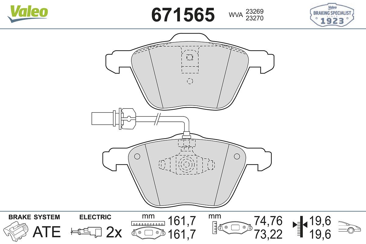 VALEO 671565 | Fren Balatası Ön-VW Sharan 01-10 Transporter 99-04 Seat Alhambra 01-10
