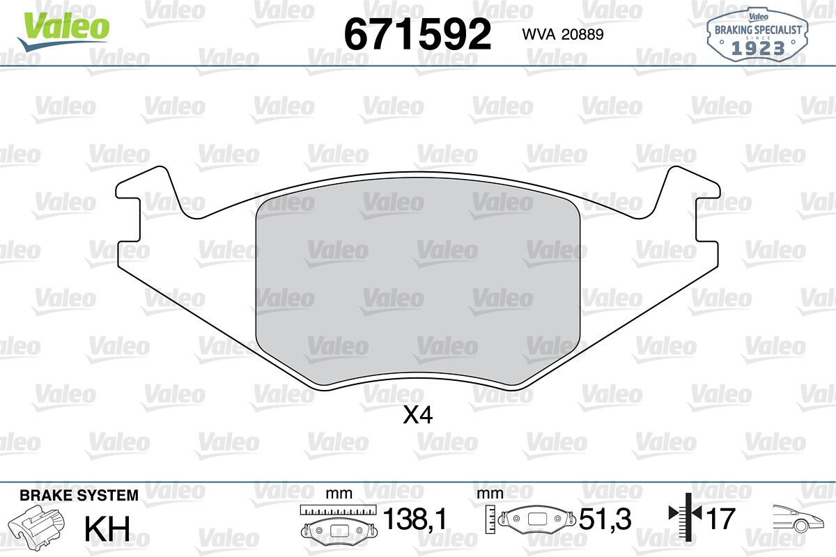 VALEO 671592 | Fren Balatası Ön Wva 20887 Volkswagen Polo Golf II Passat