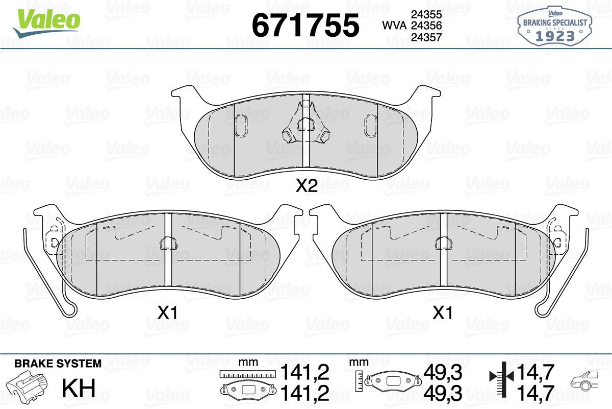 VALEO 671755 | Fren Balatası Arka Jeep Cherokee 2.4 2.5Crd 2.8Crd 3.7-Wrangler 2.4 3.8 4.0