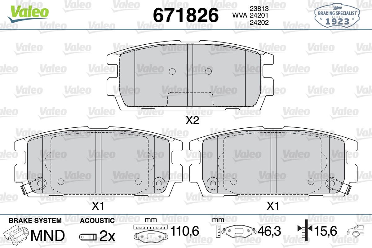 VALEO 671826 | Arka Fren Balatası Tucson Jm 2.0 2.CRDI 08 / 04-Terracan 2.5 TD 2.9Crdı 12 / 01 -