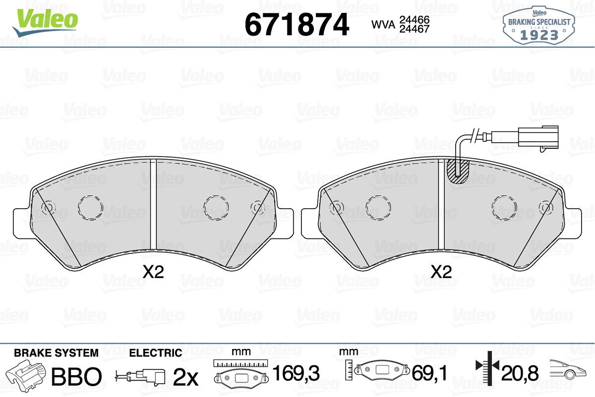VALEO 671874 | Fren Balata Ön 14-Ducato Çift Fişli
