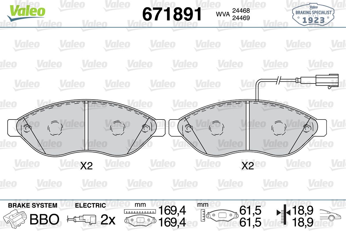 VALEO 671891 | Fren Balatası Ön (Fiat: Ducato / Peugeot: Boxer / Citroen: Jumper 03 / 18Q)