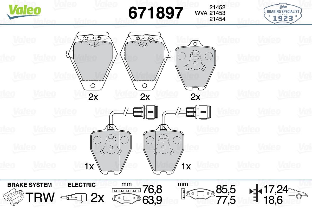 VALEO 671897 | Fren Balatası Ön A8 94-00