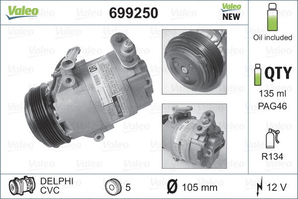 VALEO 699250 | Klima Kompresörü (Opel Astra G)