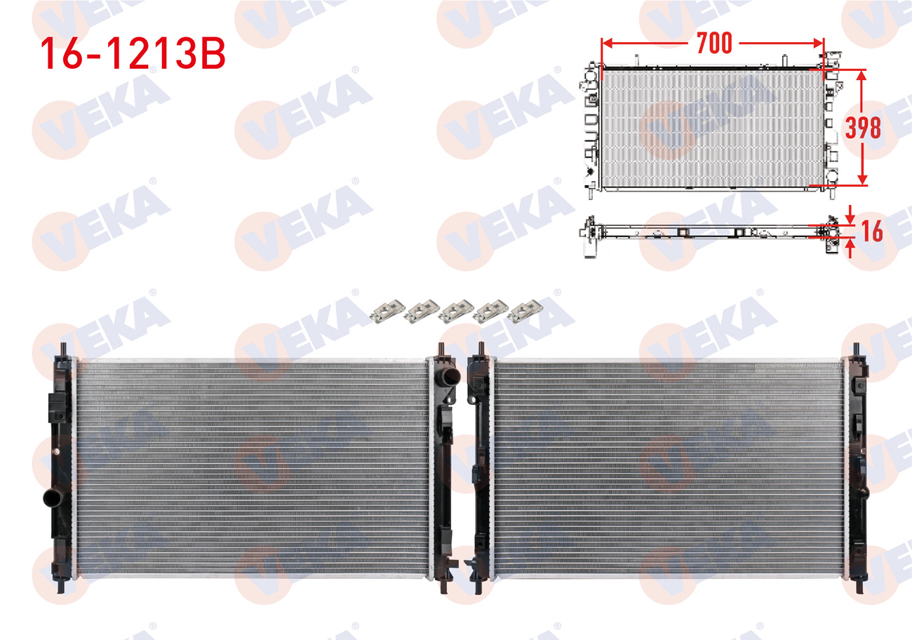 VEKA 16-1213B | Su Radyatörü Brazing Chrysler Sebrıng 2007-2010 / Jeep Compas, Patrıot 2006-/ Dodge Caliber, Avenger 2006-2011 / 2.0 CRDI, 2.0, 2.4 A-T / M-T