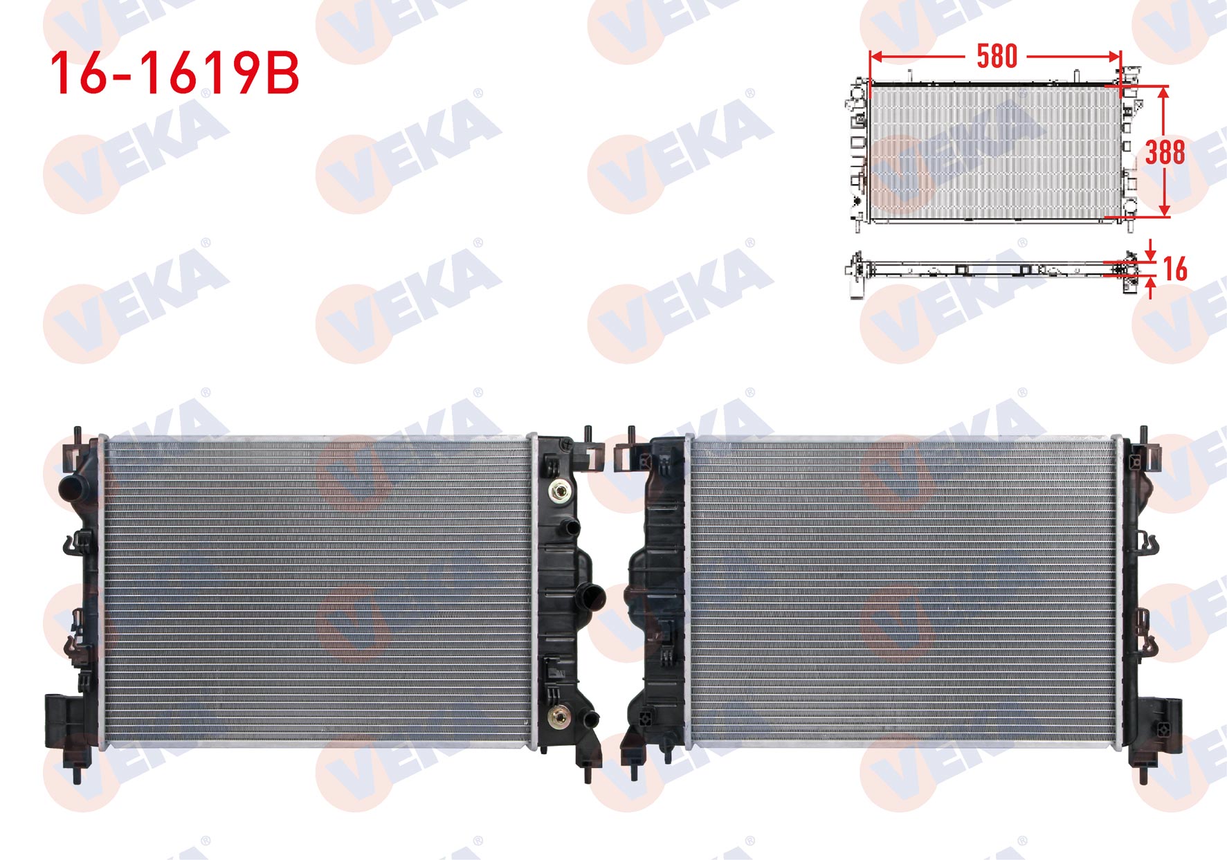 VEKA 16-1619B | Su Radyatörü Brazing Chevrolet Trax 1.6İ-16V A-T 2012-2014 / Opel Mokka 1.6İ 16V A-T 2012 -