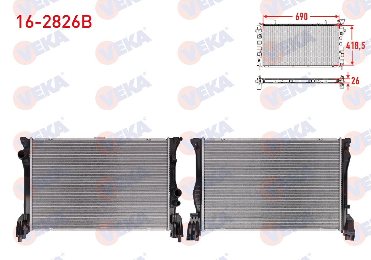 VEKA 16-2826B | Su Radyatörü Brazing (5.5mm Fin) Mercedes Vito (W447) 119 Bluetec A-T / M-T Ac + 2014 -