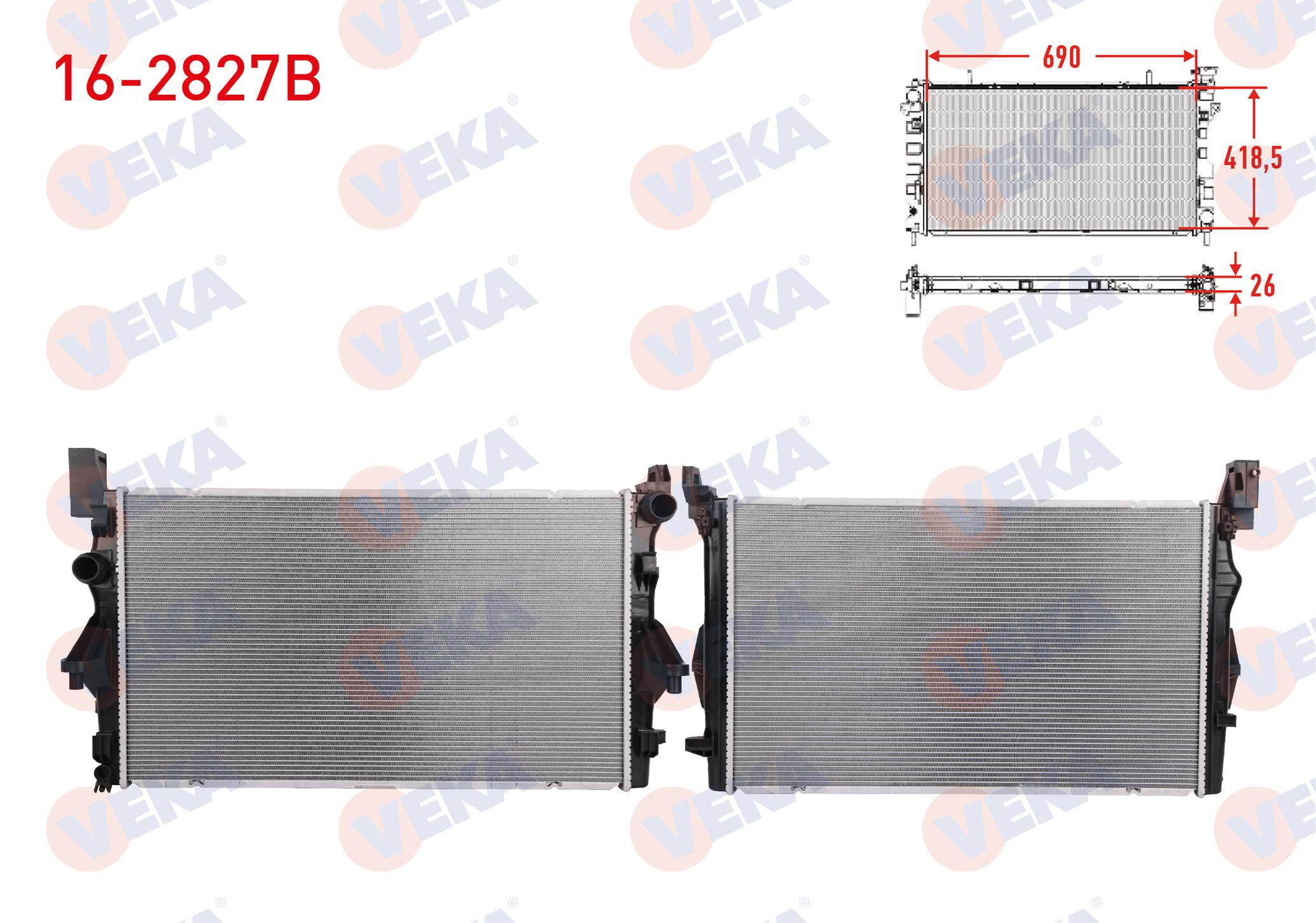 VEKA 16-2827B | Su Radyatörü Brazing (5.5mm Fin) Mercedes Vito (W447) 111 CDI A-T / M-T Ac + 2014 -