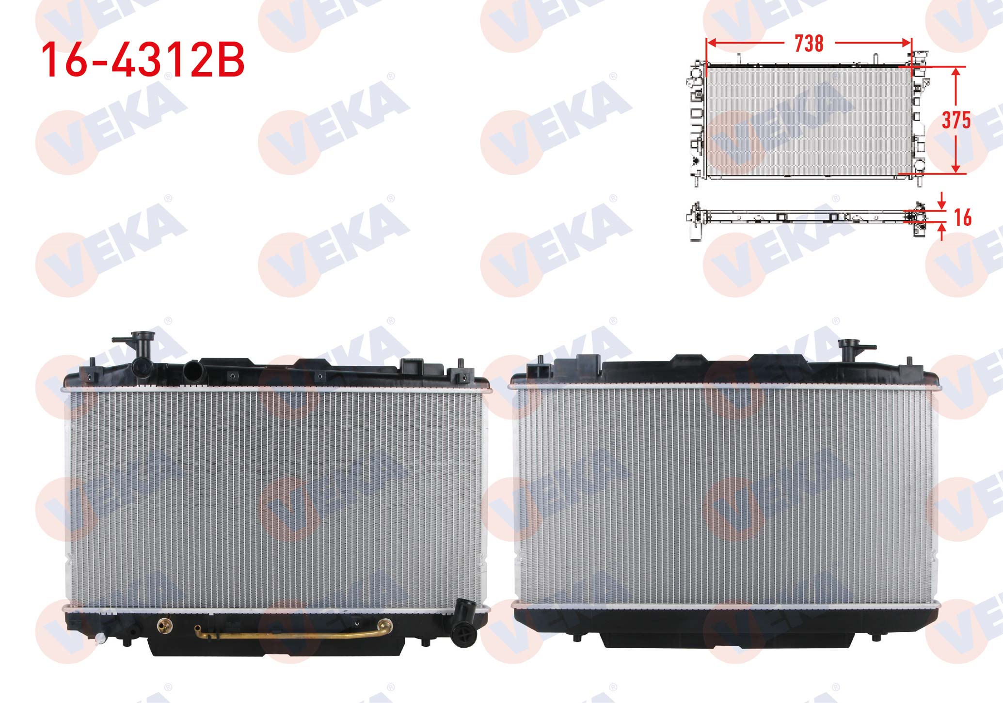 VEKA 16-4312B | Su Radyatörü Brazing Toyota Rav4 II (Cla2_, Xa2_, Zca2_, Aca2_) 2.0 Vvt-I A-T 2000-2006