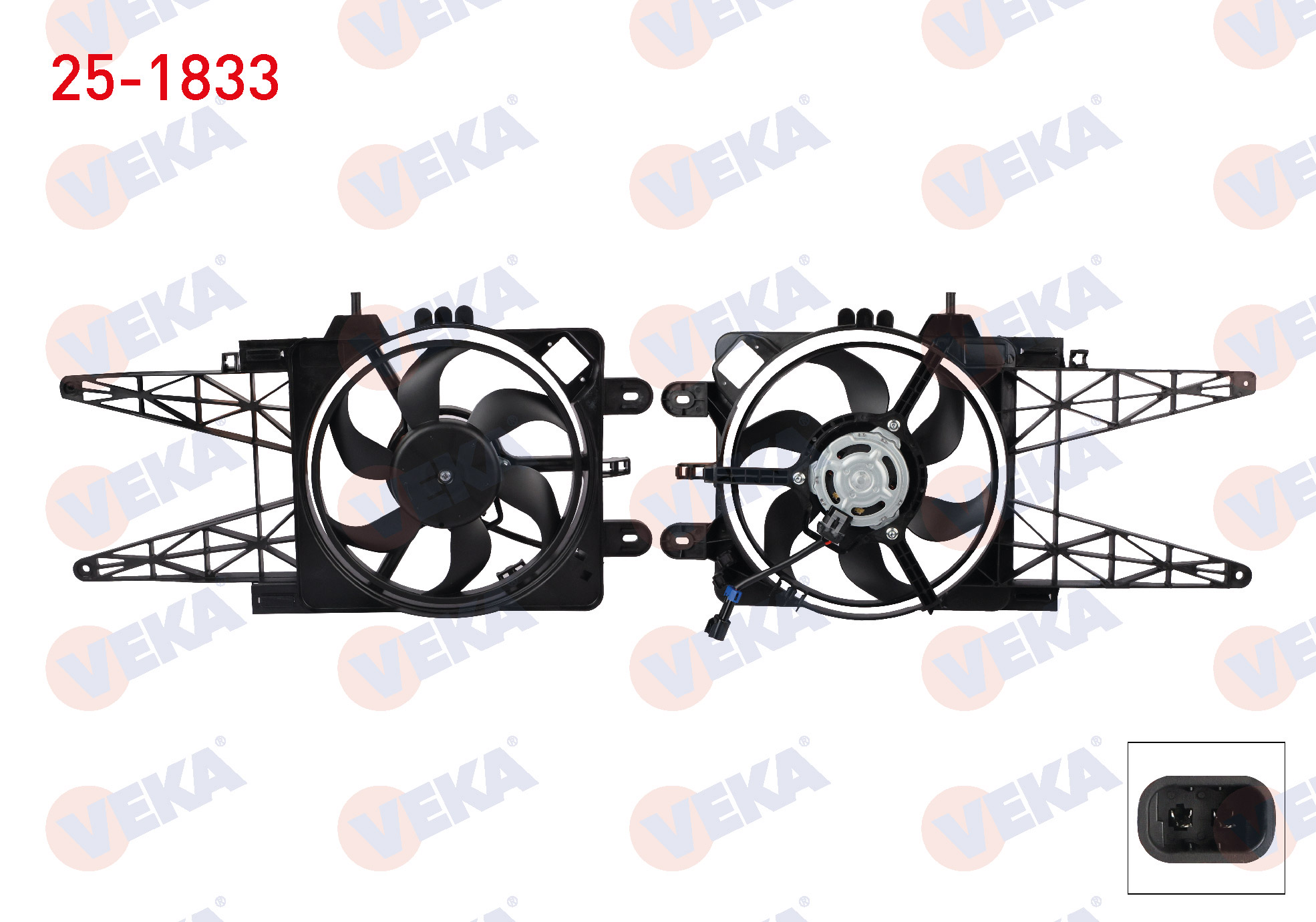 VEKA 25-1833 | Fan Motoru (Su + Klima) Davlumbazlı Tekli Fanlı (Kablolu) Fiat Punto 1.2 Ac + 1999-2012