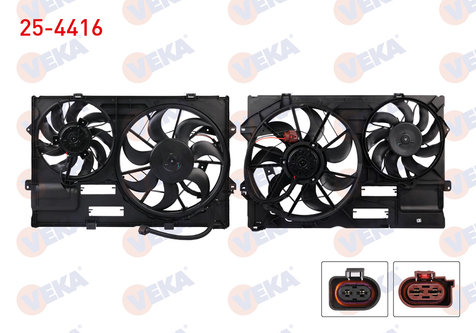 VEKA 25-4416 | Fan Motoru (Su + Klima) Davlumbazlı Çiftli Volkswagen Transporter V (7Ha,7Hh,7Ea,7Eh) 1.9 TDI 2003-2011