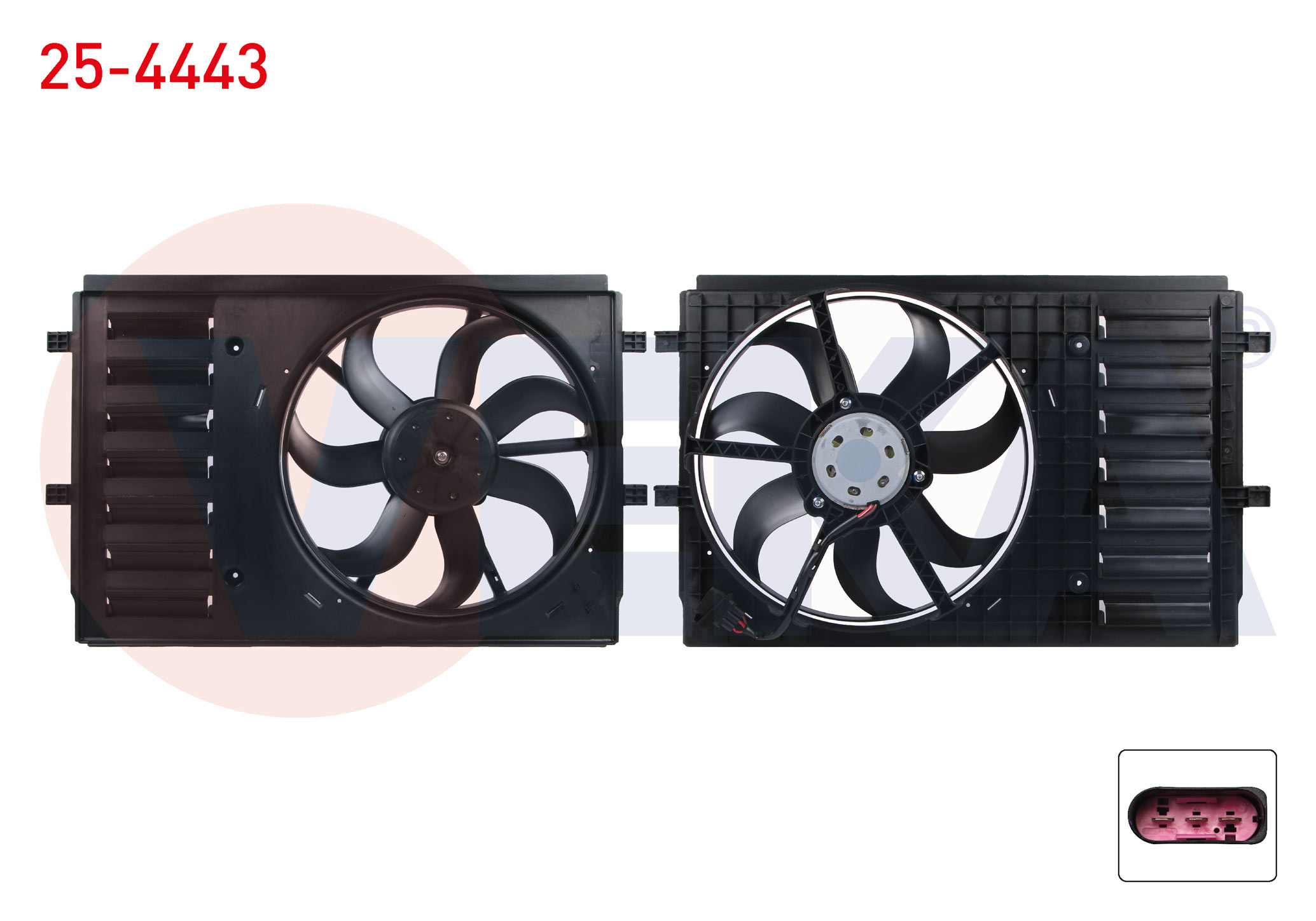 VEKA 25-4443 | Fan Motoru Davlumbazlı VW Polo (9N) 1.4 16V 2001-2007 / Polo V (6R1) 1.4 TSI 2012-2014 / Audi A1 (8X1) 1.4 TSI 2014-2018 / Seat Ibiza IV (6J5, 6P1) 1.4 TDI 2008-2010 / Toledo IV (Kg3) 1.2 TSI 2012-2015