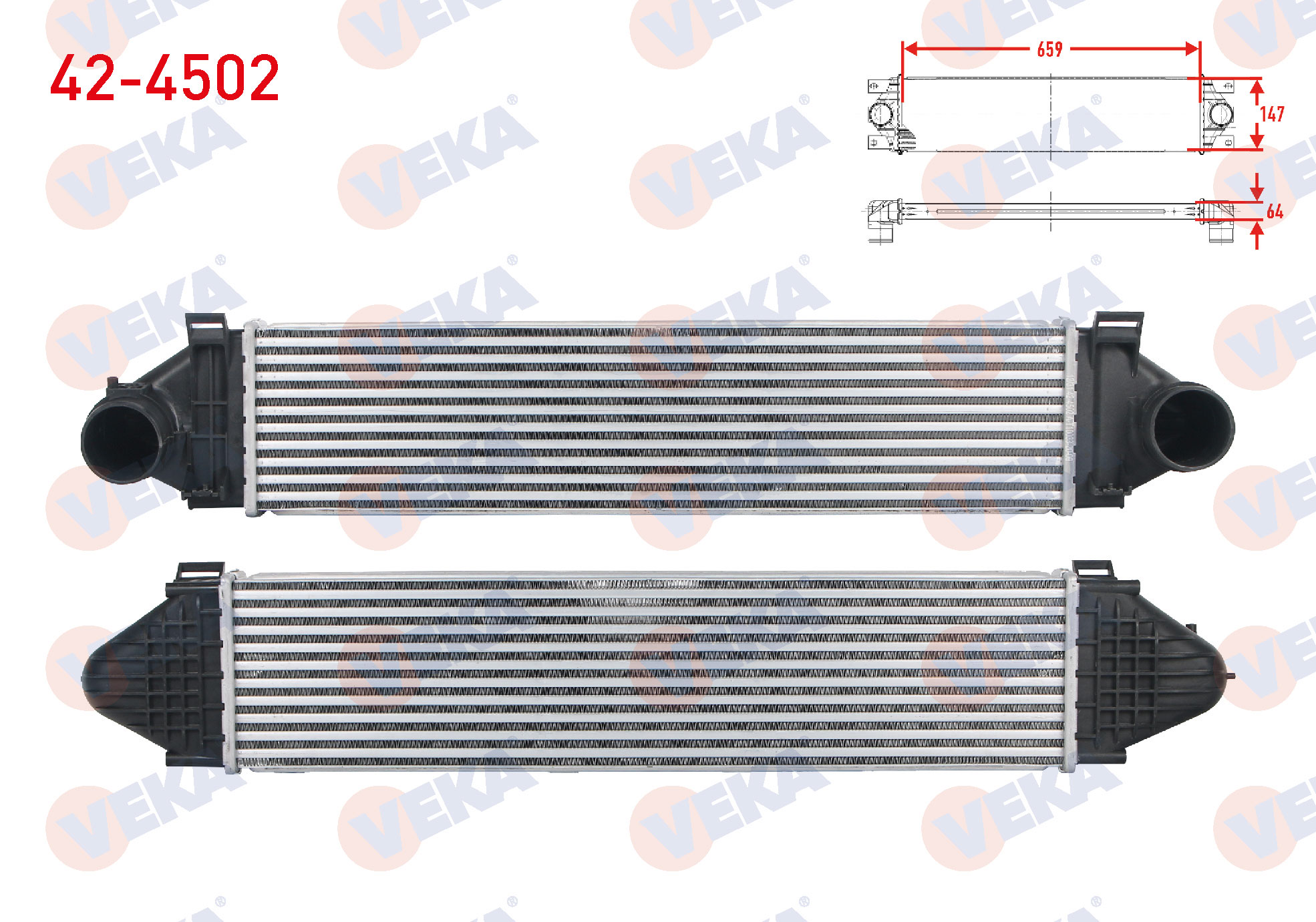 VEKA 42-4502 | Turbo Radyatörü (Intercooler) Volvo S80 II 2.4 D5-D3 2006-/ V70 III 2.4 D5 2006-/ Xc60 2.0 T-D5-2.4 D 2008-/ Xc70 II 2.4 D5 2007-/ Freelander II-Evoque 2.0 Si4 4X4 2011 -