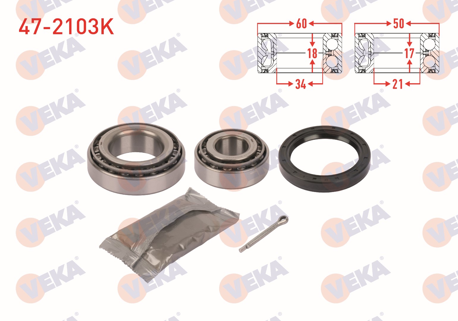 VEKA 47-2103K | On Tekerlek Rulman Kiti Sol-Sağ Hyundai H100 2.5 D 1993-2004 / Mitsubishi L 300 2.5 D 1986-2006