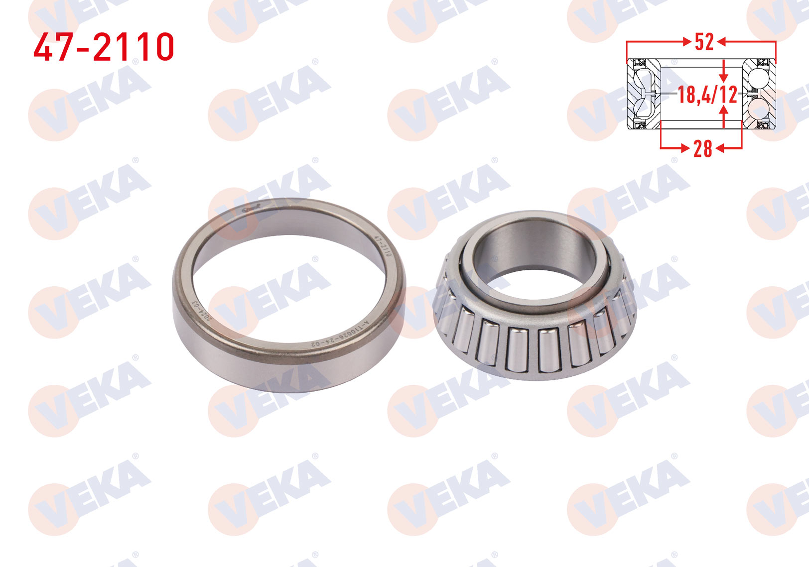 VEKA 47-2110 | Arka Tekerlek Rulmanı Sol-Sağ 28X52x18,4 / 12 Hyundai Excel 1.5İ 1990-1995