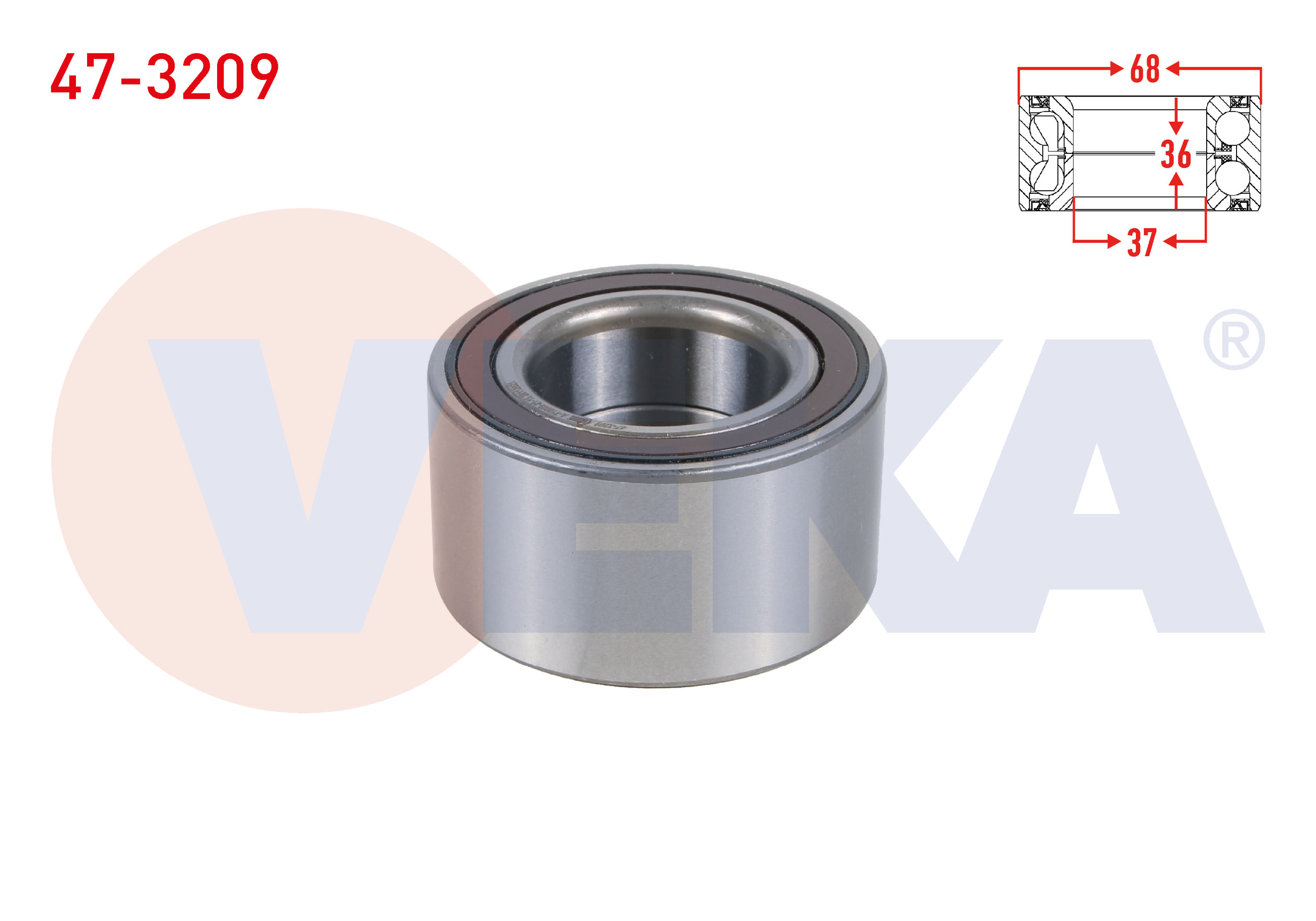VEKA 47-3209 | On Tekerlek Rulmanı Sol-Sağ ABS'li 37X68x36 Opel Corsa F 1.2-1.5 D 2019-/ Peugeot 2008 II-208 II 1.5 Bluehdı-1.2 Puretech 2018-/ Ds Automobıles Ds3 Crossback 1.2 Puretech-1.5 Bluehdı 2019 -