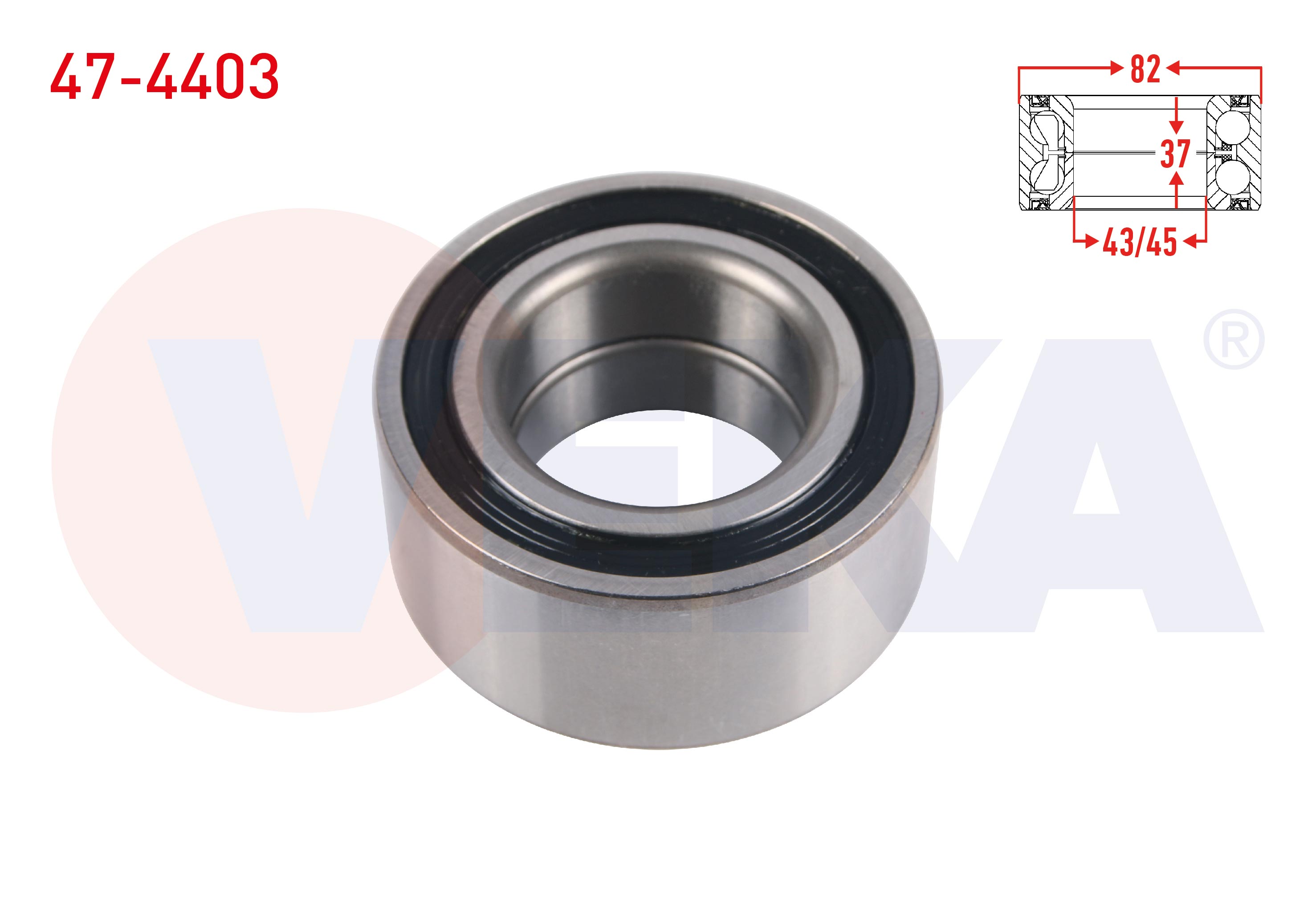 VEKA 47-4403 | On Tekerlek Rulmanı Sol-Sağ 43 / 45X82x37 Passat 1.9 TDI-1.8 1996-2005 / Audi A4 1.8 T 1994-2001 / Audi A6 1.9 TDI-2.0-1.8 T 1994-2004 / Skoda Superb 1.9 TDI-1.8 T 2002-2010