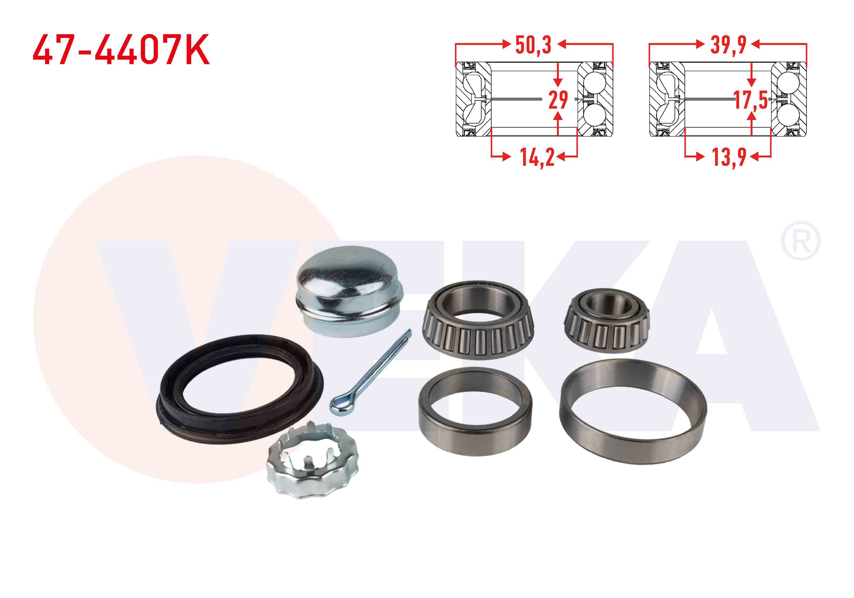 VEKA 47-4407K | Arka Tekerlek Rulman Kiti Sol-Sağ Polo 1.6İ 1994-1999 / Caddy 1.9 TDI 1995-2004 / Golf II-III 1.6İ 1983-1999 / Favorit 136 1.3 1989-1994 / Cordoba 1.6 1999-2002 / Corsa 1.4İ 16V 1993-2000 / Audi 80 1.6 1978-1986