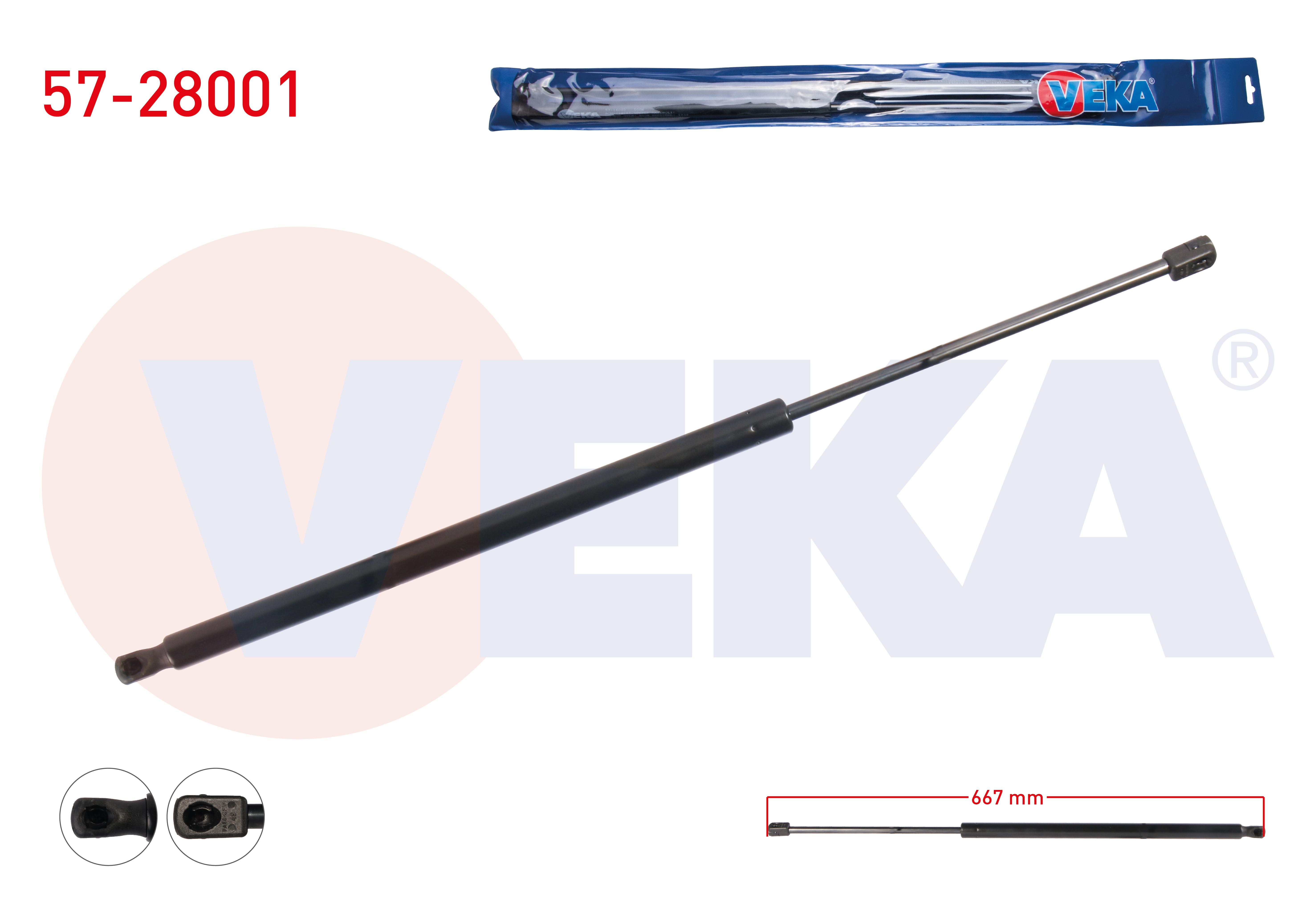 VEKA 57-28001 | Bagaj Amortisörü 667mm / 755N Mercedes Vito (W639) 2003-2014 / Viano (W639) 2003-2014 | 2 Adet