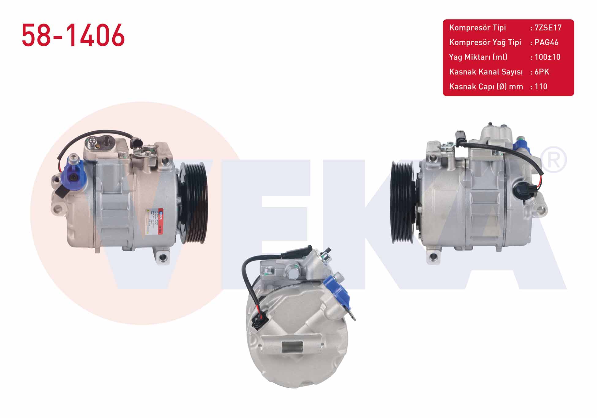 VEKA 58-1406 | Klima Kompresörü 6Pk 110mm BMW 3 Serisi (E90) 325İ-330Xi 2005-2011