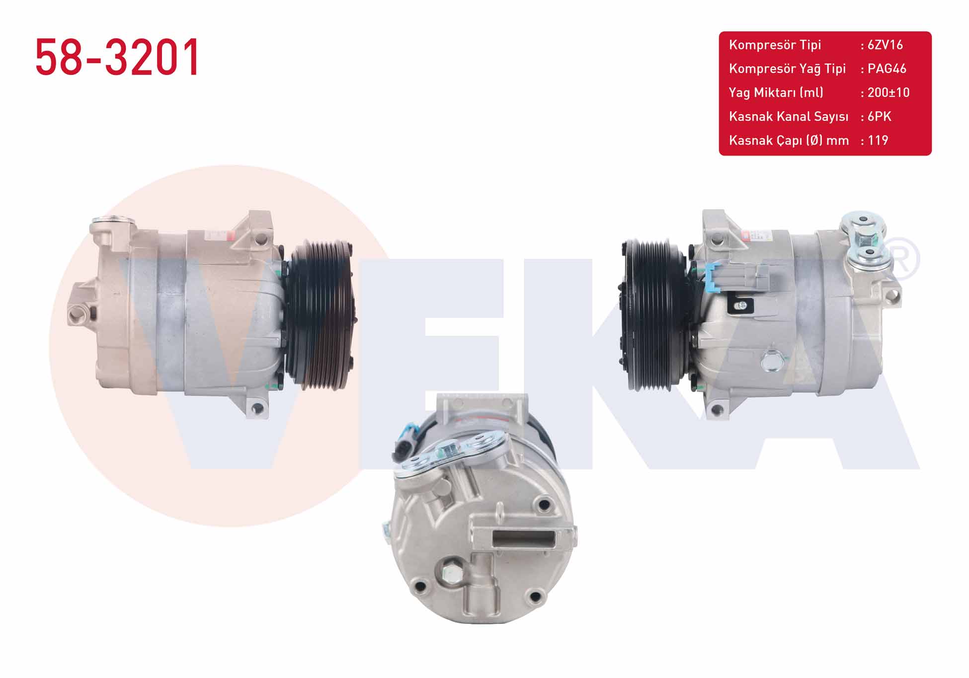 VEKA 58-3201 | Klima Kompresörü 6Pk 119mm Opel Vectra B 1.7 TD-2.0 Dı-2.0 Dtı-2.0İ 1995-2003