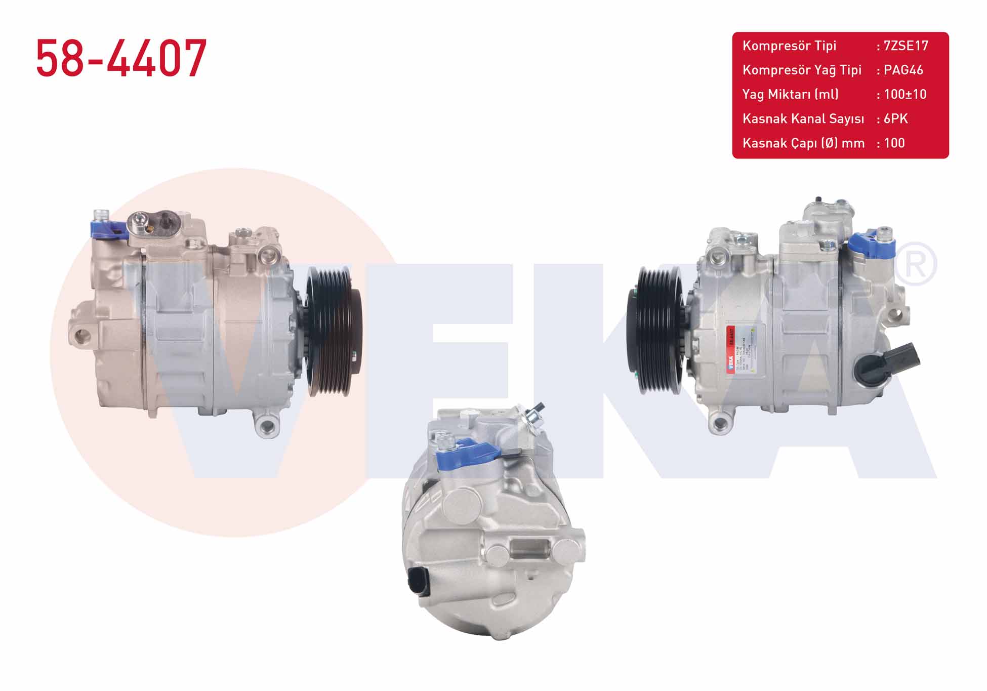 VEKA 58-4407 | Klima Kompresörü 6Pk 100mm Volkswagen Amarok 2.0 TDI-2.0 Bıtdı 2010-/ Transporter V 2.0 TDI 2003-2011