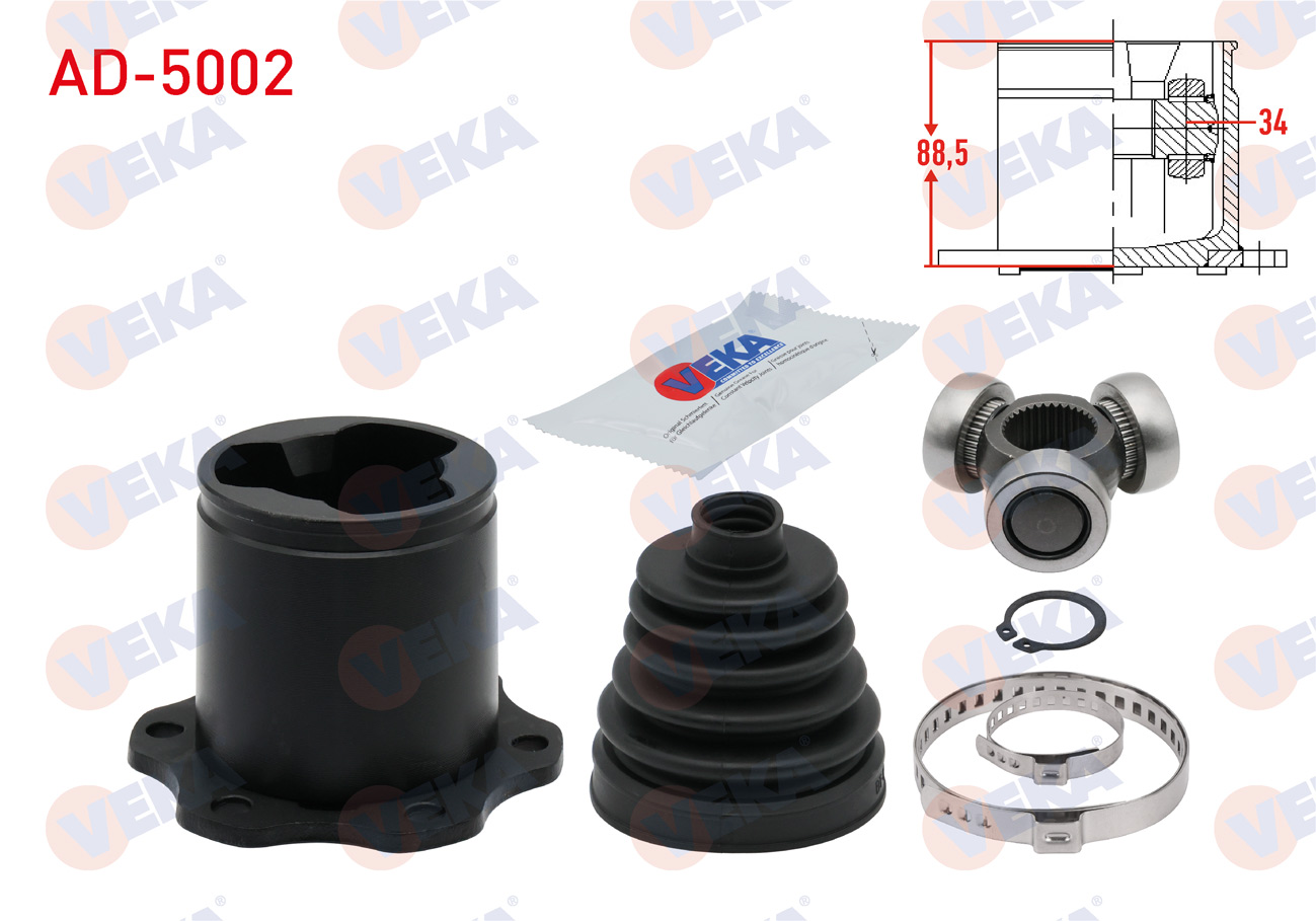 VEKA AD-5002 | Aks Kafası Sol-Sağ On Ic Audi A4 (8K2,B8) 2.0 TDI Freze Dıs 34 Uzunluk 88,50mm 2007-2015