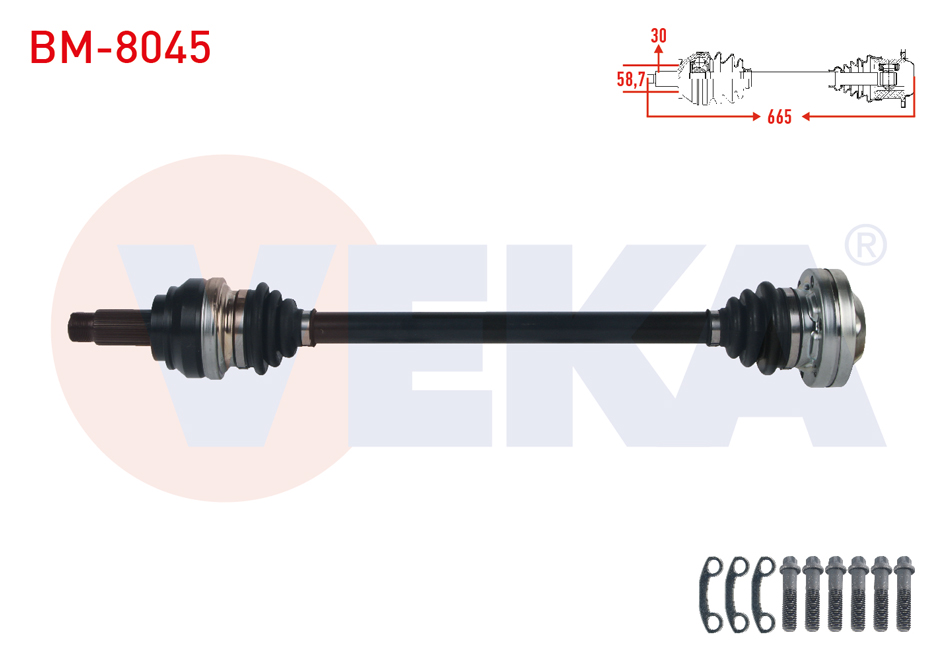 VEKA BM-8045 | Komple Aks Sağ Arka Uzunluk 665mm BMW 320 D (E90) 2005-2011