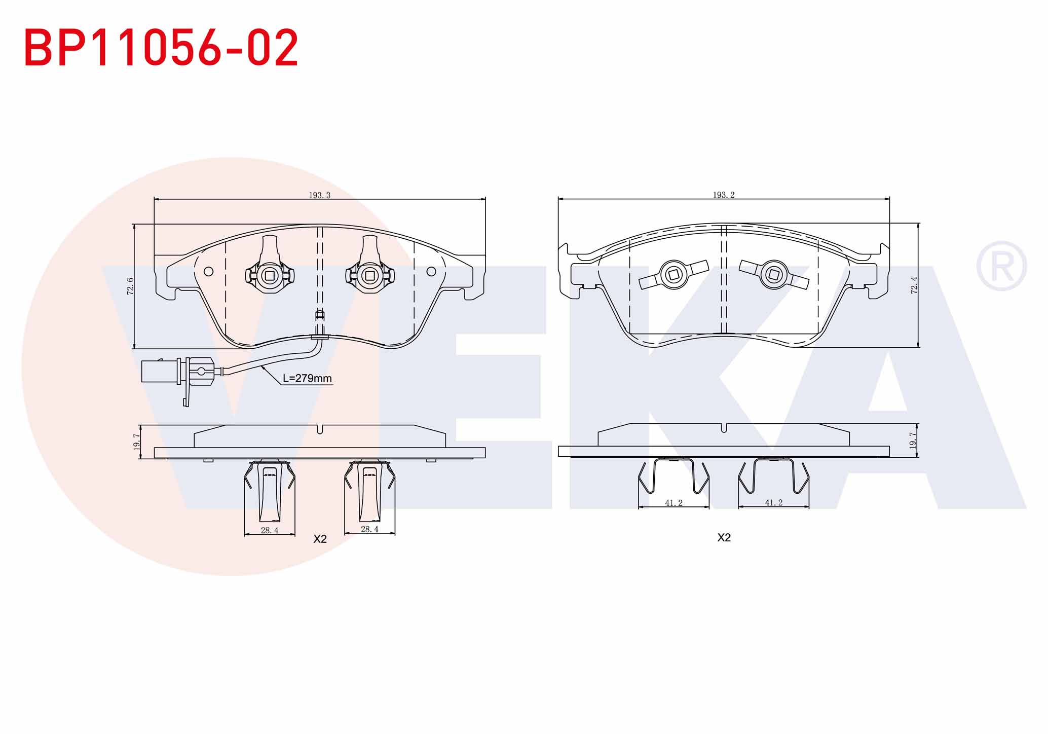 VEKA BP11056-02 | Fren Balata Ön Fişli Audi A8 (4E_) 3.0 TFSI 2003-2010 / Audi A8 (4E_) 4.2 V8 TDI 2003-2010 / Audi A8 (4E_) 3.7 2003-2010