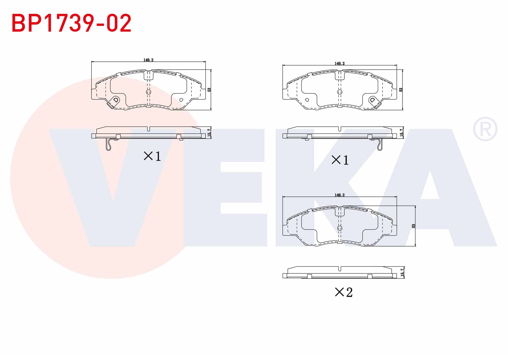 VEKA BP1739-02 | Fren Balata Ikazlı On Kia Sportage (K00) 2.0İ 16.00mm 1994-2004
