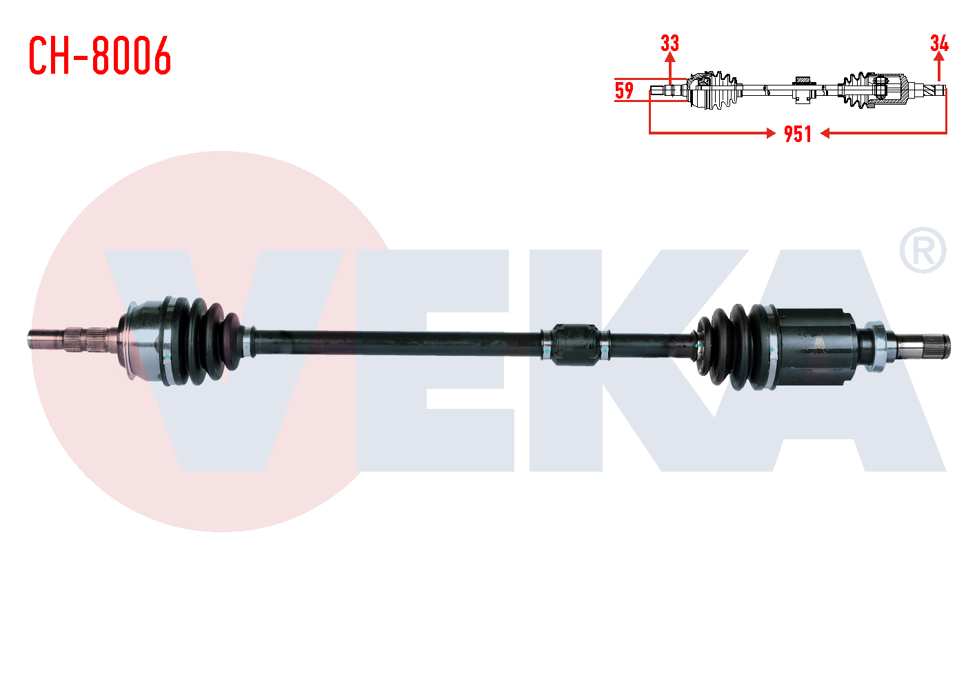 VEKA CH-8006 | Komple Aks Sağ On Chevrolet Cruze (J300) 1.6 A-T Uzunluk 951mm 2009-2014