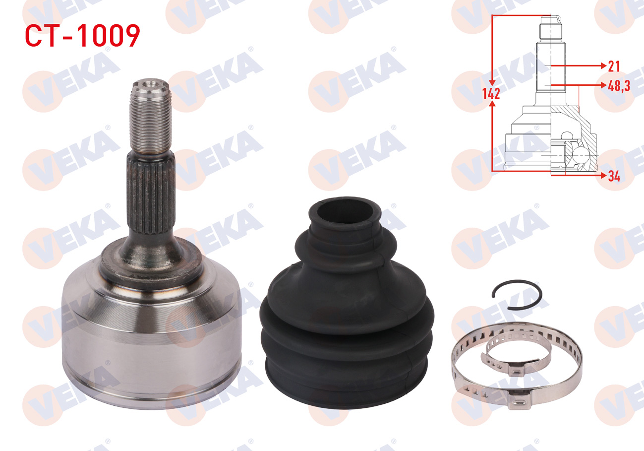 VEKA CT-1009 | Aks Kafası Sol-Sağ On Dıs Uzunluk 142mm Citroen C3 III 1.6 Blue HDI 2018-/ C4 Cactus 1.2 Thp-1.6 Blue HDI 2014-/ Peugeot 208 1.2 VTI M-T 2012 -