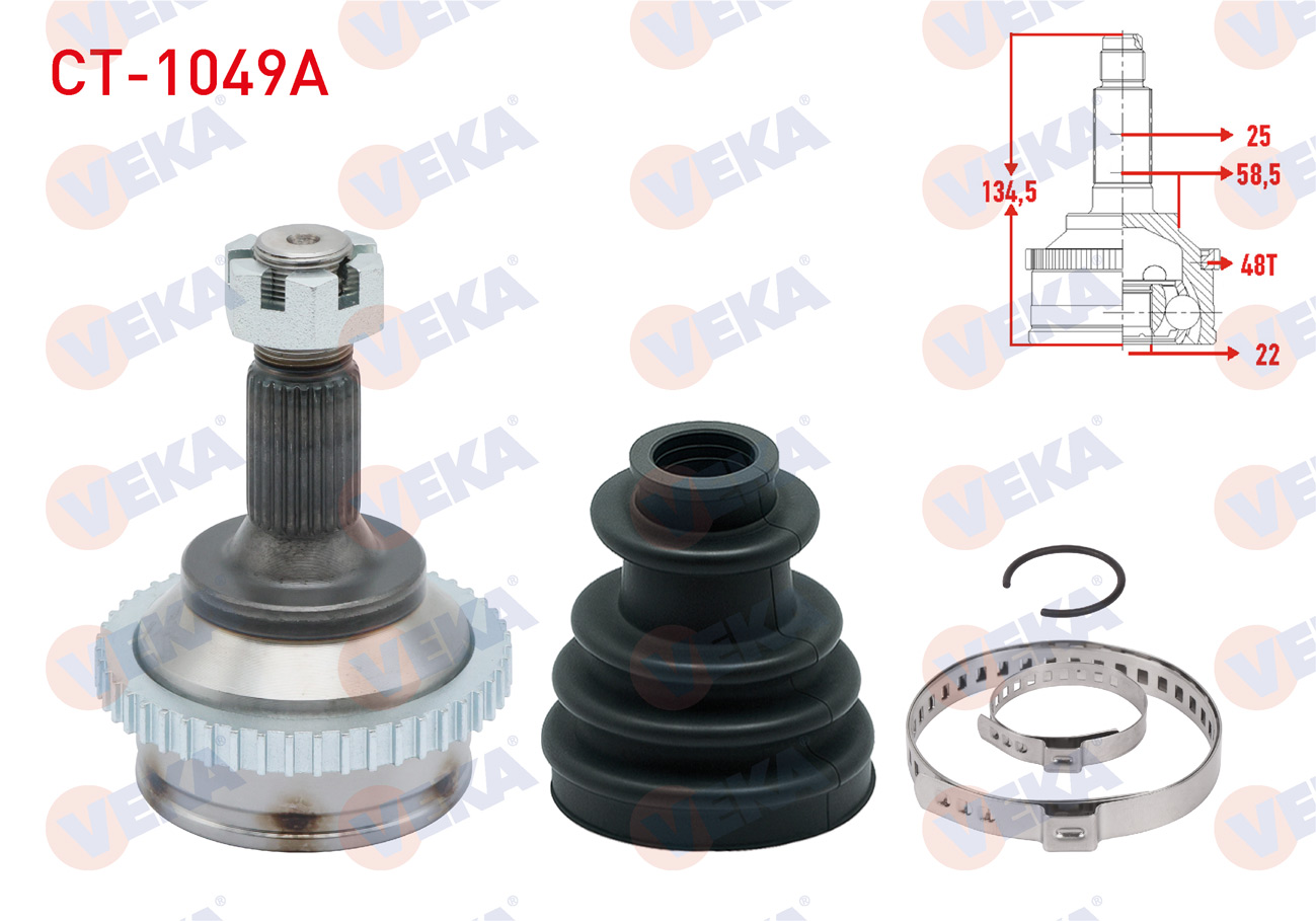 VEKA CT-1049A | Aks Kafası Sol-Sağ On Dıs Peugeot 307 (3A / C) 1.4 ABS'li 48 Dıs 25X22x58,5 Uzunluk 134,5 mm 2000-2007