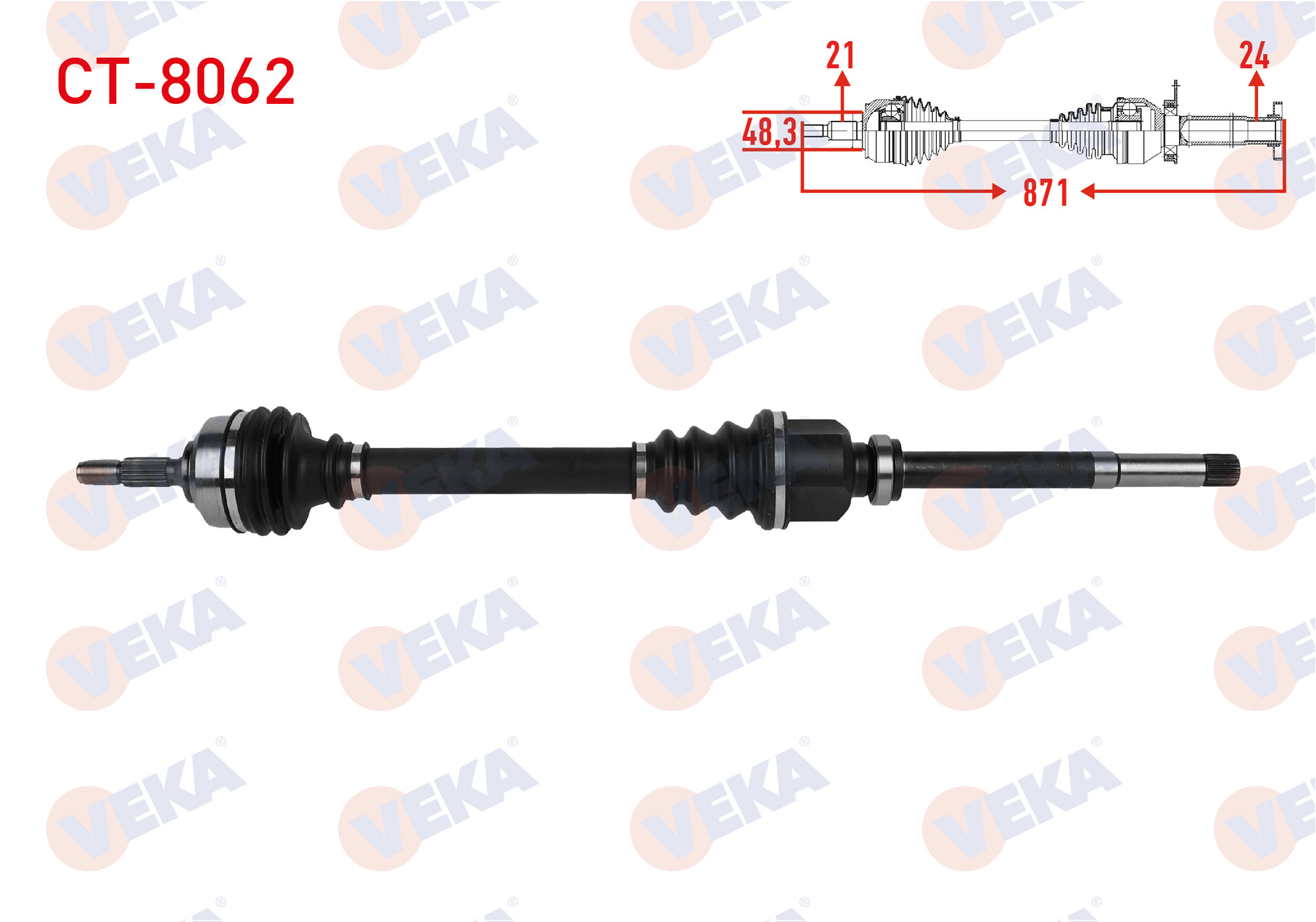 VEKA CT-8062 | Komple Aks Sağ On Uzunluk 871mm Citroen C3 III 1.6 Blue HDI 2018-/ C4 Cactus 1.2 Thp-1.6 Blue HDI 2014-/ Peugeot 208 1.2 VTI M-T 2012 -