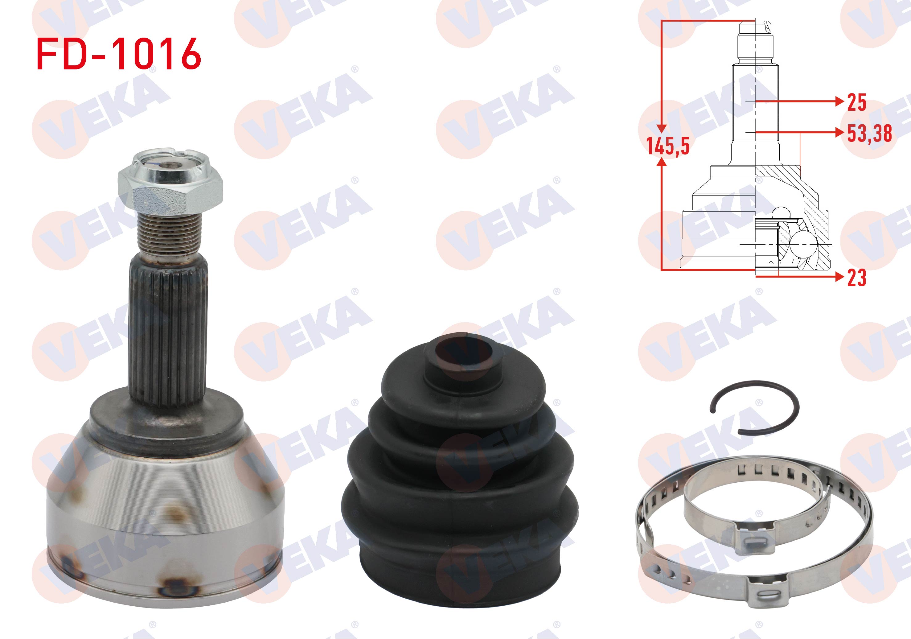 VEKA FD-1016 | Aks Kafası Sol-Sağ On Dıs Ford Focus I (Daw,Dbw) 1.4İ 16V 25X23x53,38 Uzunluk 145,5mm 1998-2004