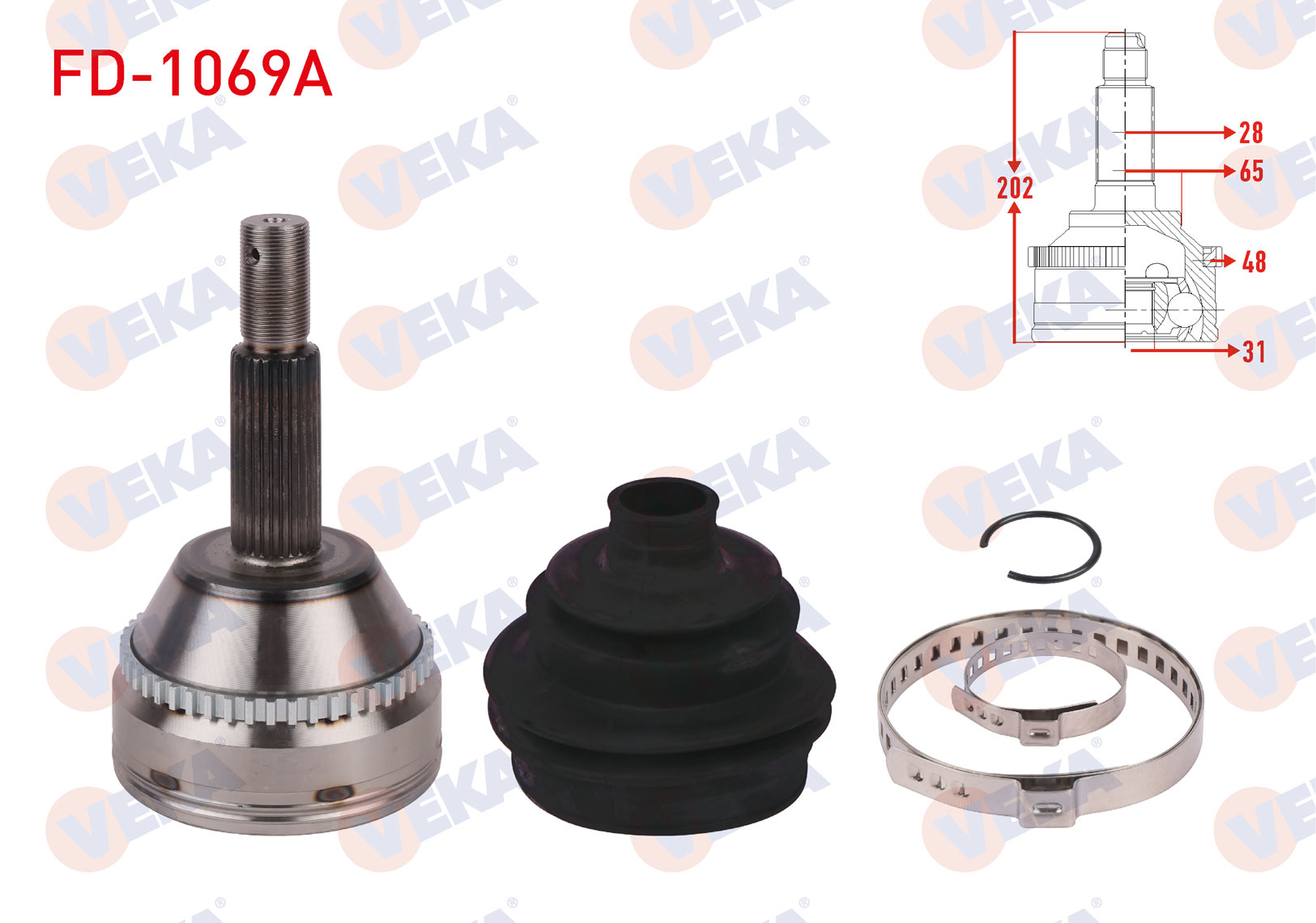 VEKA FD-1069A | Aks Kafası Sol-Sağ On Dıs ABS'li 48 Dıs 28X31x65 Uzunluk 202mm Ford Transit (V347) Büyük Kafa 2006-2014