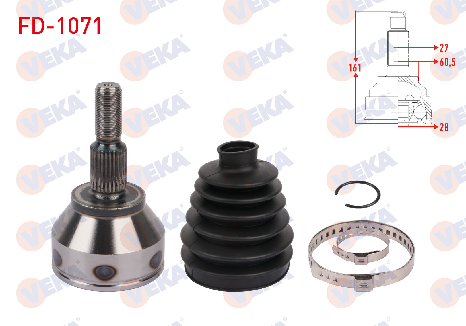 VEKA FD-1071 | Aks Kafası Sol-Sağ On Dıs 27X28x60.5 Uzunluk 161mm Ford Transit Connect 1.5 TDCI 6At 2015-/ Tourneo Connect 1.5 TDCI 6At 2015 -