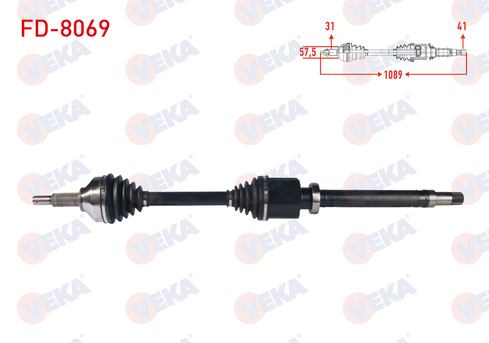 VEKA FD-8069 | Komple Aks Sağ On Uzunluk 1089mm Ford Transit Custom (V362) Uzun Sase 2.2 TDCI-2.0 TDCI 2012 -