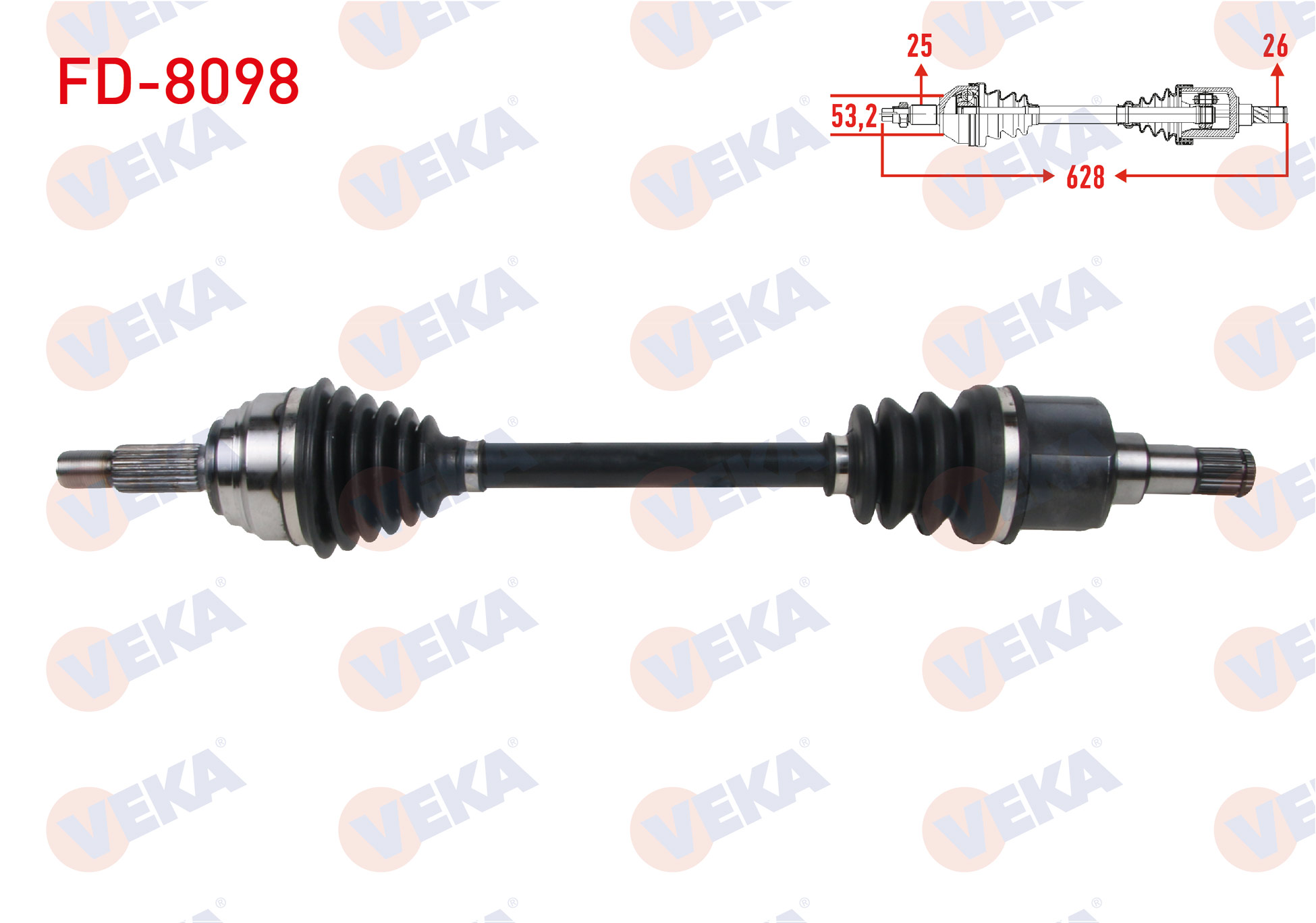VEKA FD-8098 | Komple Aks Sol Ön Uzunluk 628mm Ford Fiesta VII 1.5 TDCI 2017 -